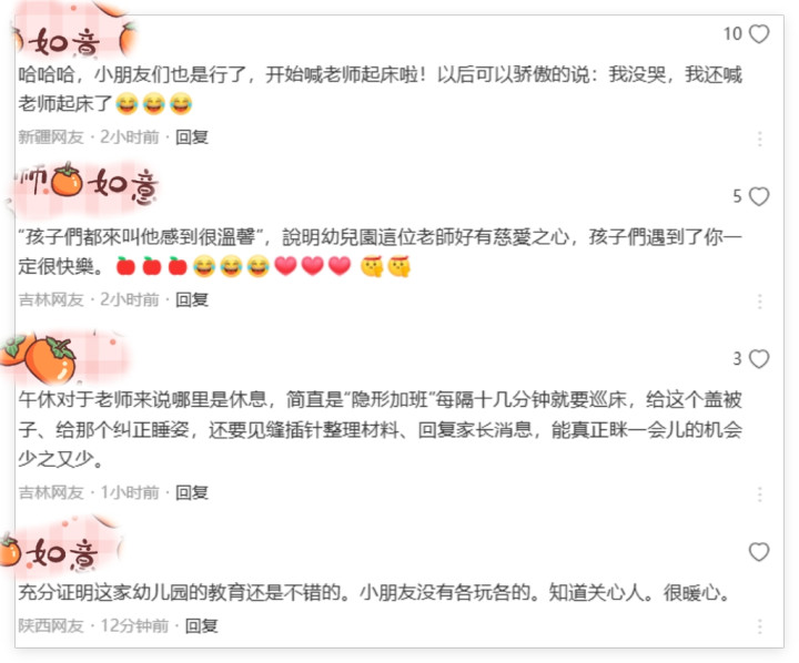 还有人说:“幼师的午休哪是真休息,巡床、整理材料、回家长消息,忙得脚不沾地,偶尔睡过头实在是太累了。”